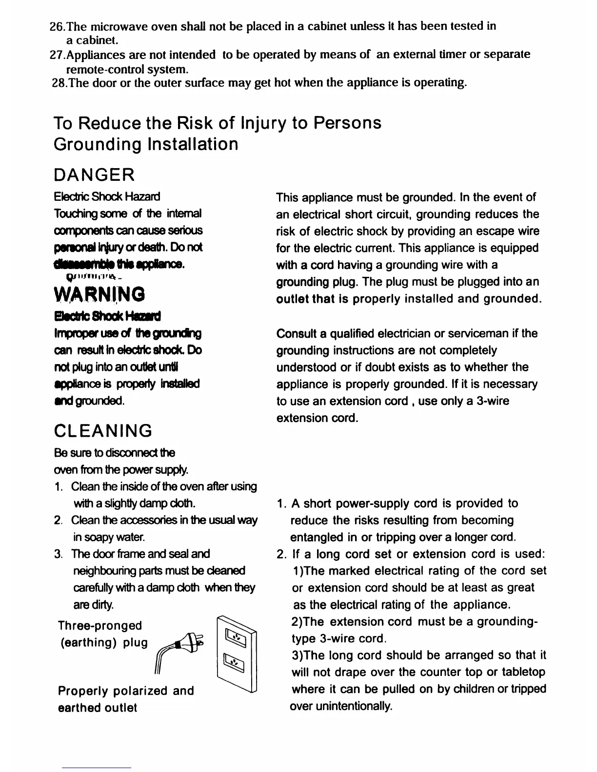 Homemaker EM925EYP - Installation and Cabinet Placement; Grounding Installation Essentials; Cleaning Procedures