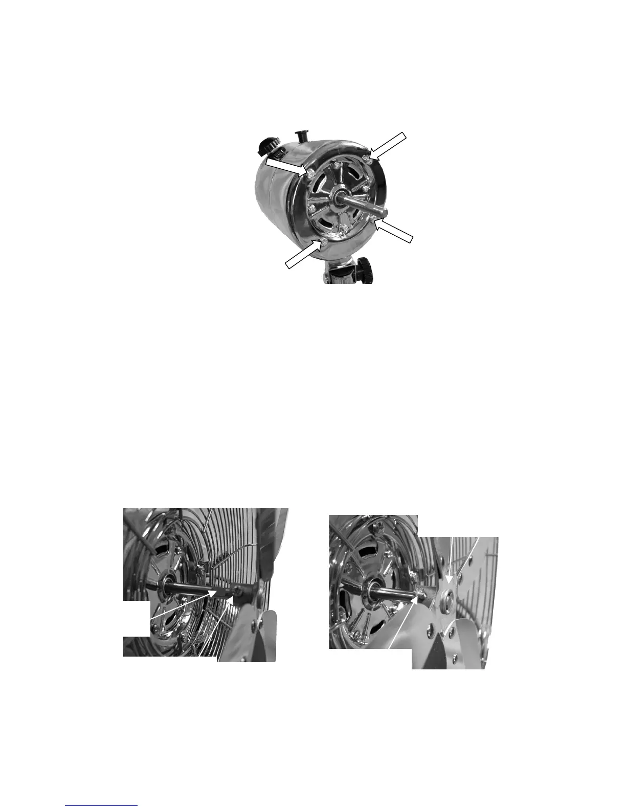 Slide the fan blade onto the spindle ensuring the screw is lined up with the “flat”