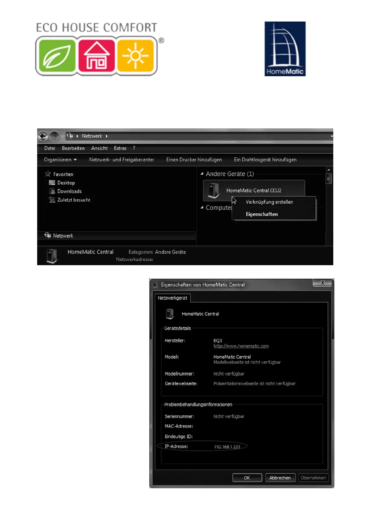 IP-Adresse Ihrer Zentrale anzeigen lassen. Zum Download der Soft-