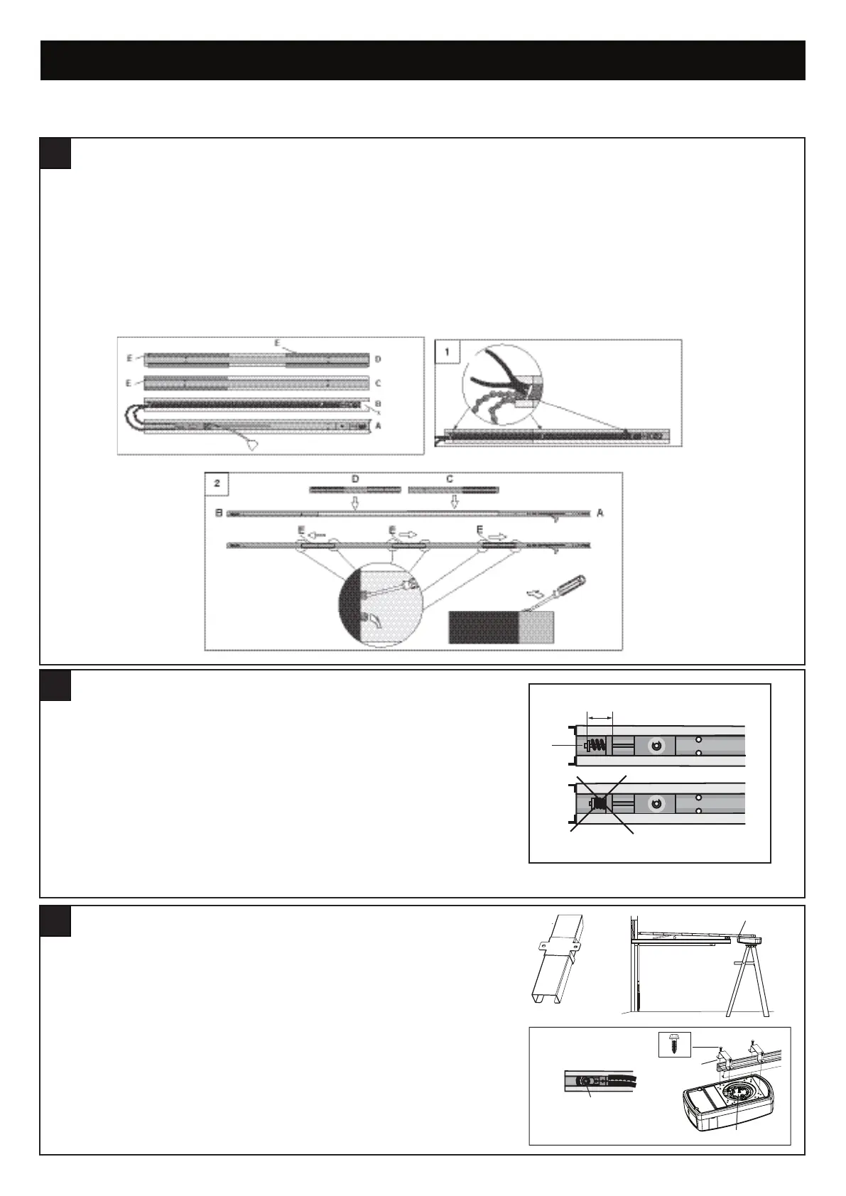 such a way so as to easily add the middle sections. Slide the 3 connecting pieces (E) over the seams of the rail sections up