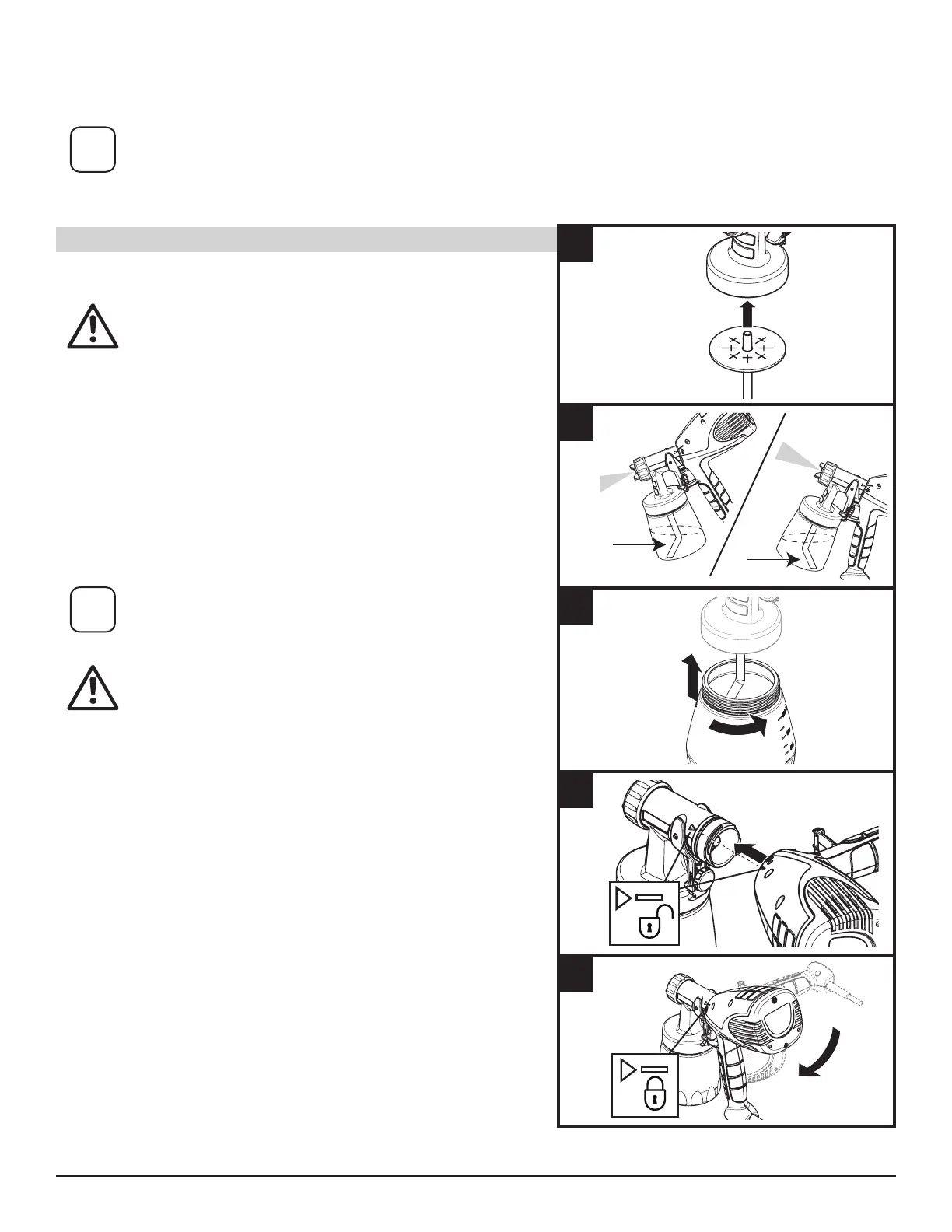 5. Inserte y gire la boquilla rociadora en la asa hacia el símbolo