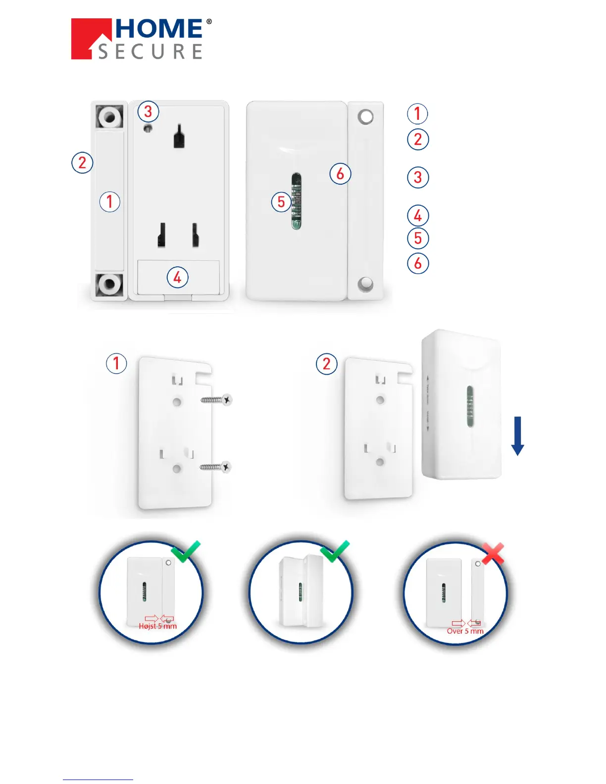 Base and magnet should be installed maximum 5 mm apart. The magnet can be placed at a 90-degree