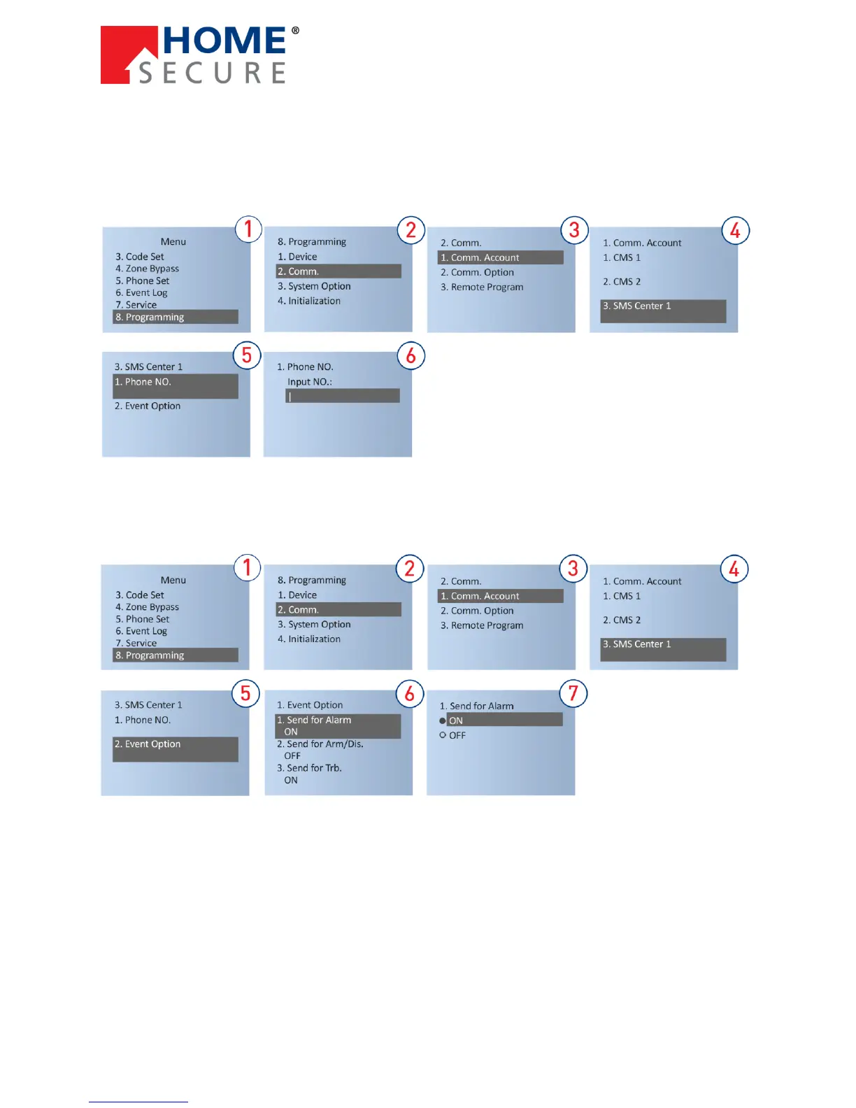 You can receive SMS for: Alarm, arm/disarm, system trouble and service info. The alarm panel with as