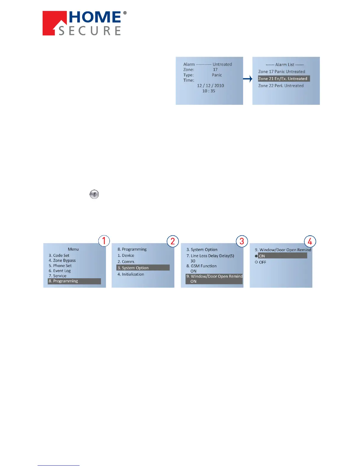 the display. Press to see which door/window sensor is open. All phone numbers that are set to