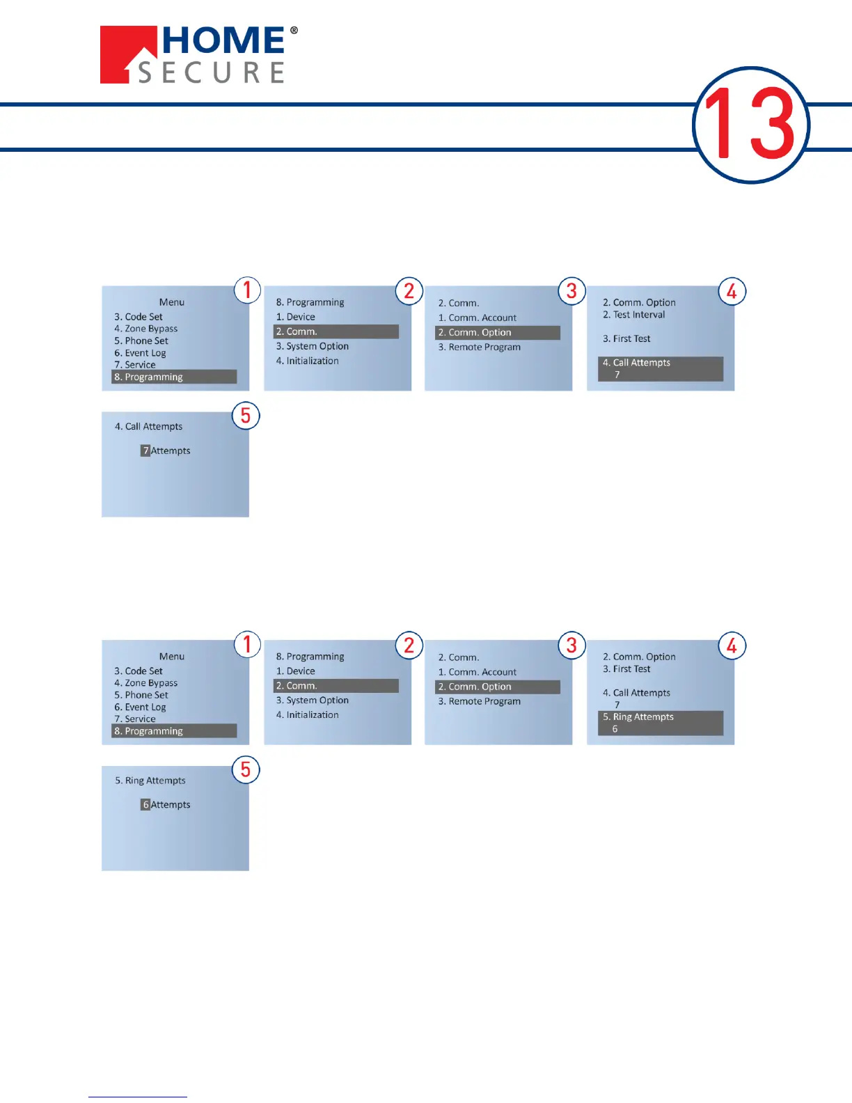 It is possible to determine how many times the alarm system should attempt to call a phone, before