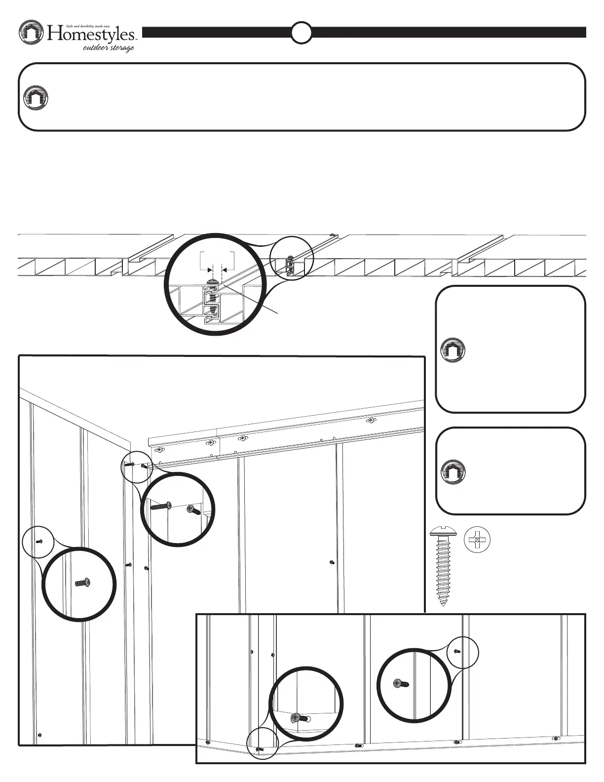Desde el interior del cobertizo, inserte tornillos de