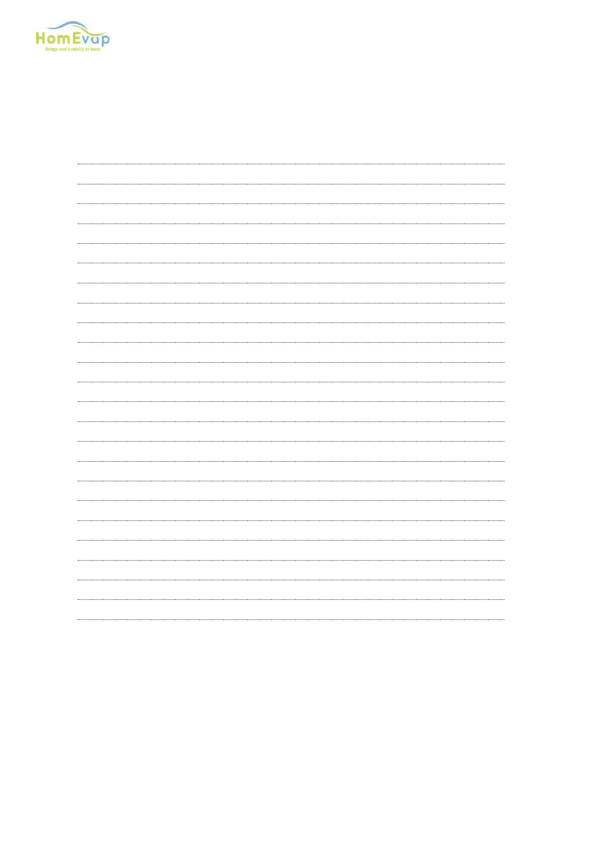 HomEvap Direct - Default Chapter; Table of Contents