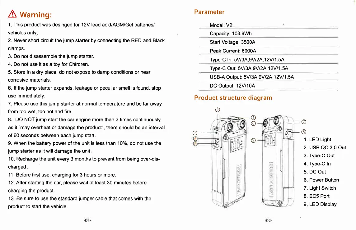 11 . Before first use, charging for 3 hours or more.