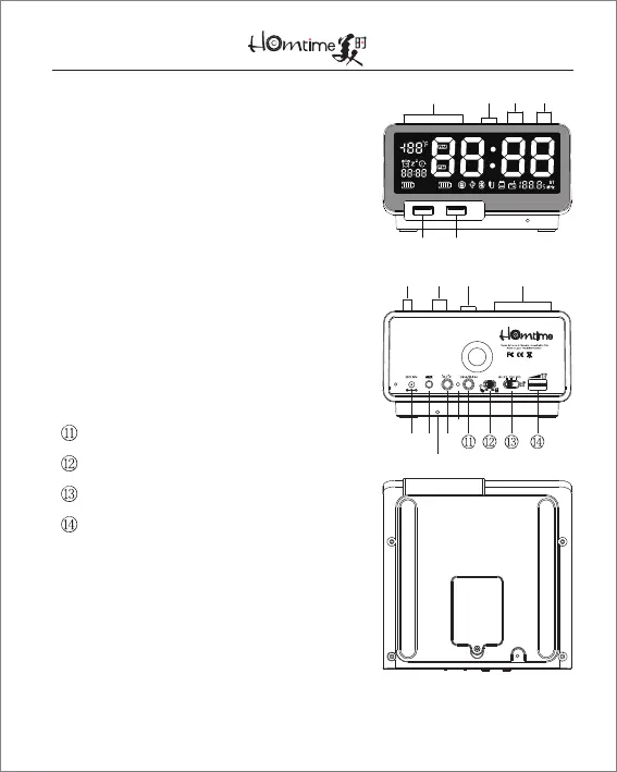 Homtime C12 - Device Controls Diagram; Top Panel Controls; Rear and Side Panel Connections
