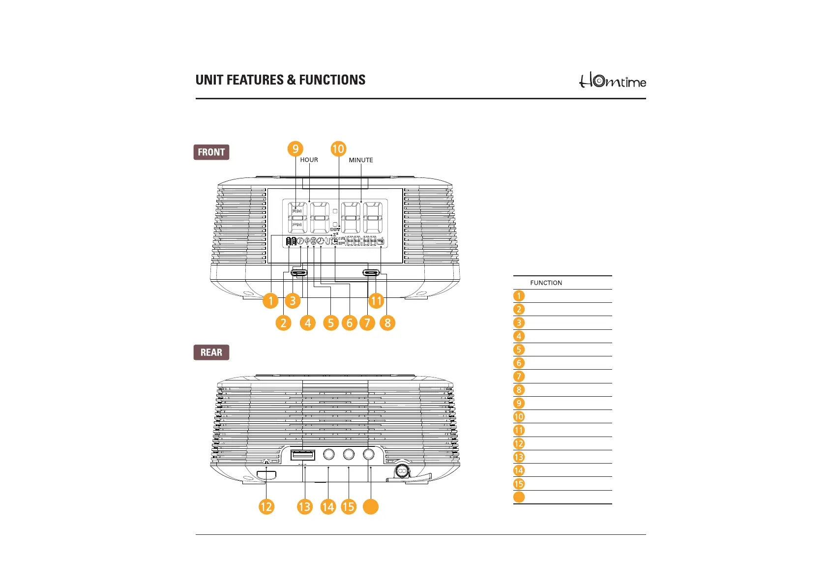 Homtime D8-PD - UNIT FEATURES AND FUNCTIONS; FRONT AND REAR PANEL LAYOUT