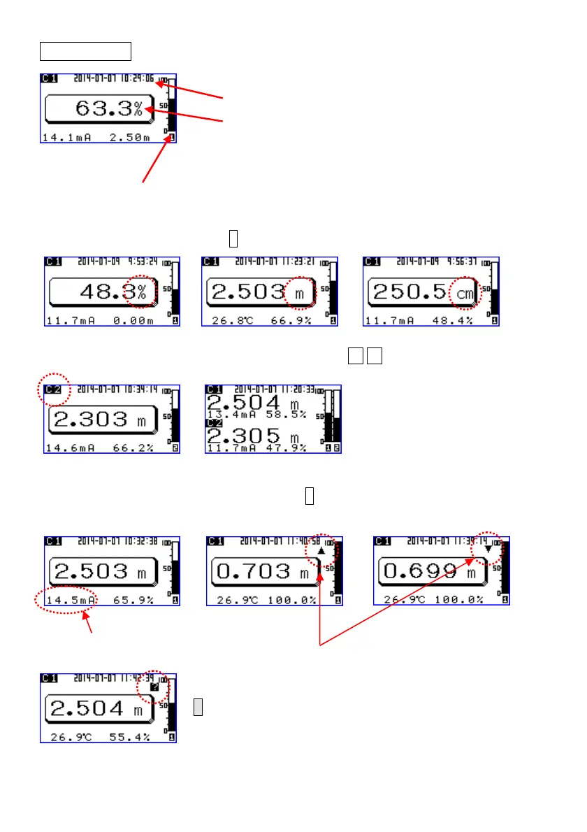 Select the unit, %, m or cm by ↑ key.