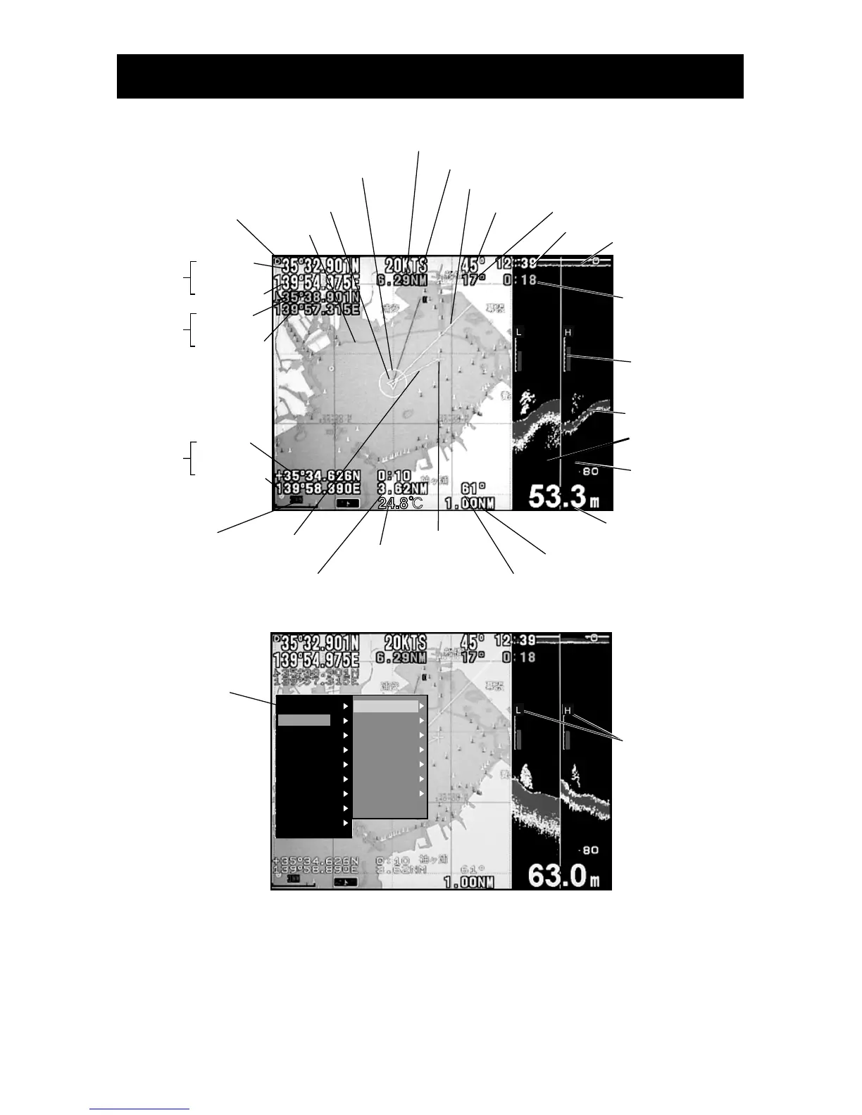 On HE-6802 or HE-6902, fish finder display on right