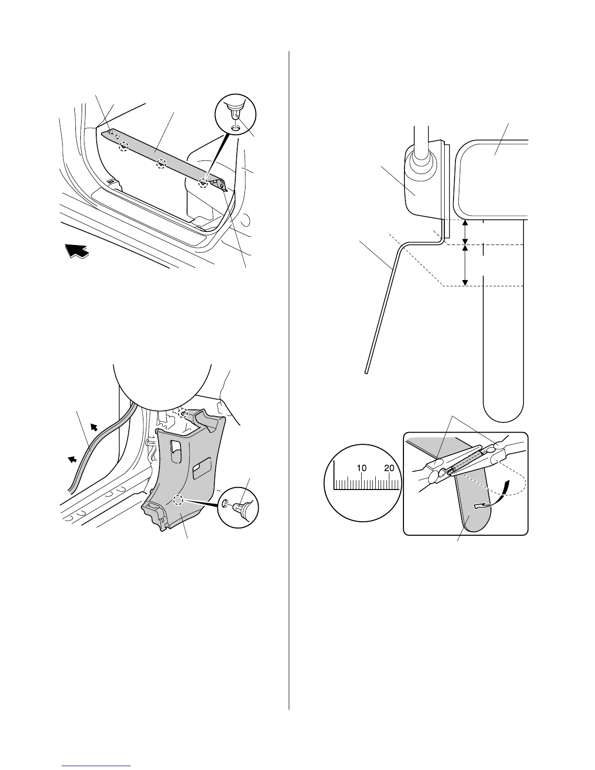 24. Remove the driver’s front door sill trim (two retaining