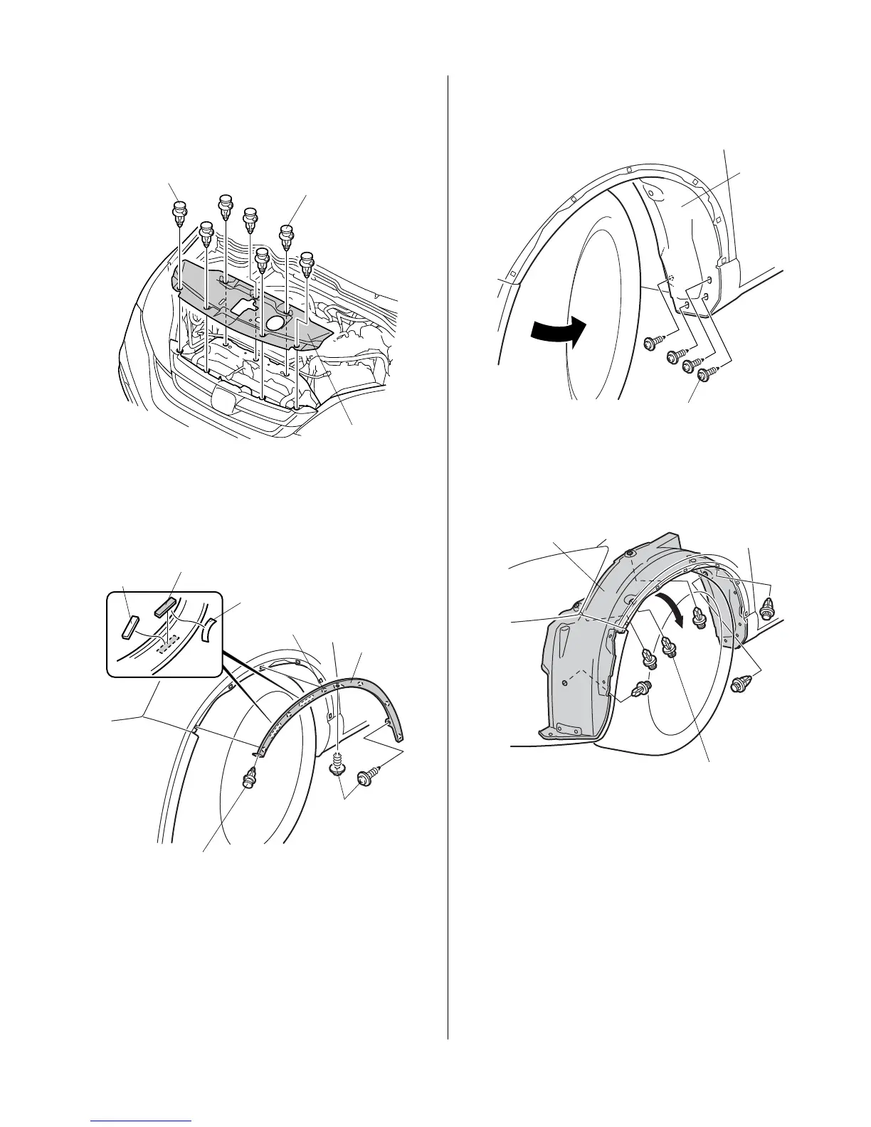 88. Lower the left inner fender (six clips).