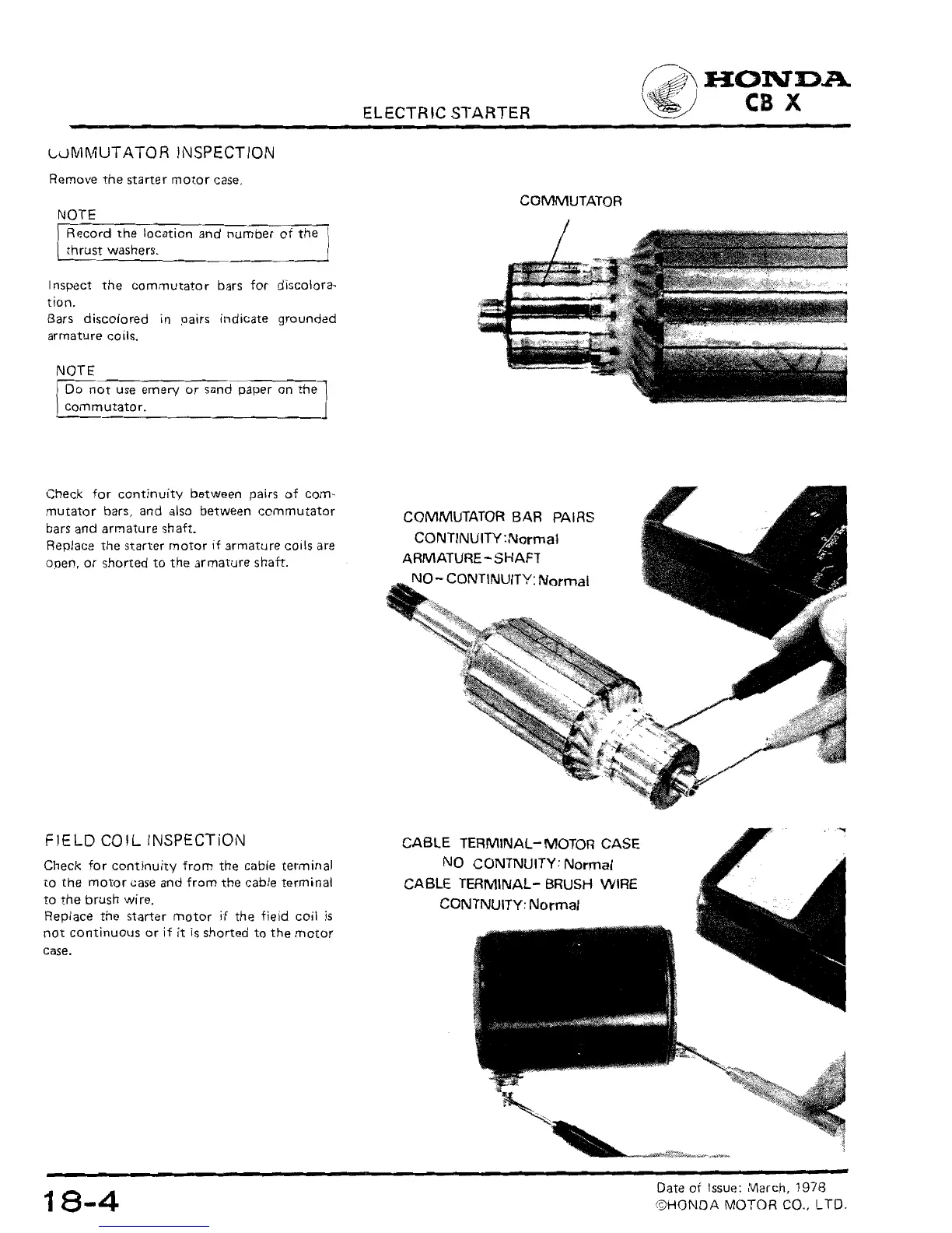 Honda 1979 CBX - Commutator Inspection; Fiel Coil Inspection