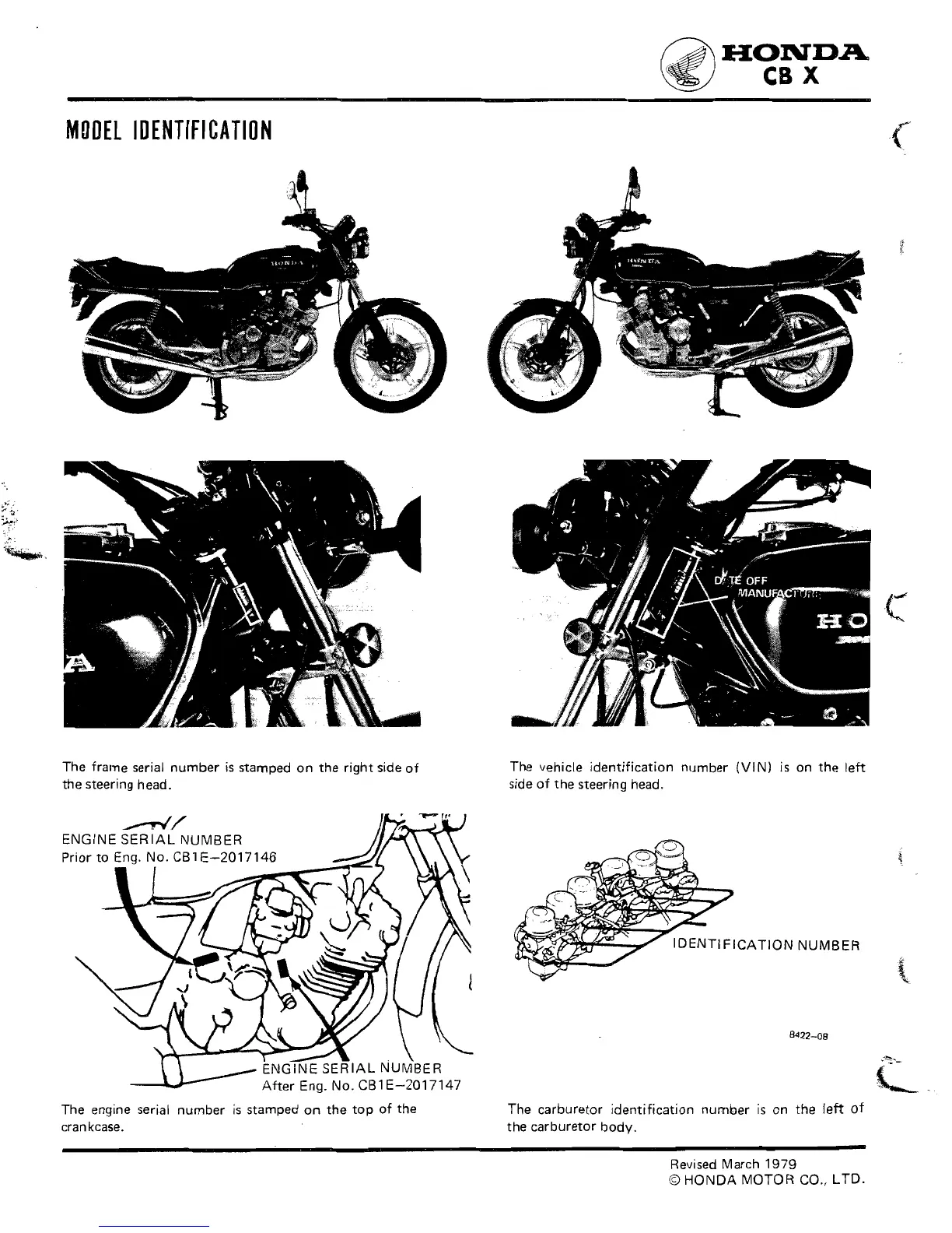 Honda 1979 CBX - Model Identification; Engine Serial Number; Identification Number