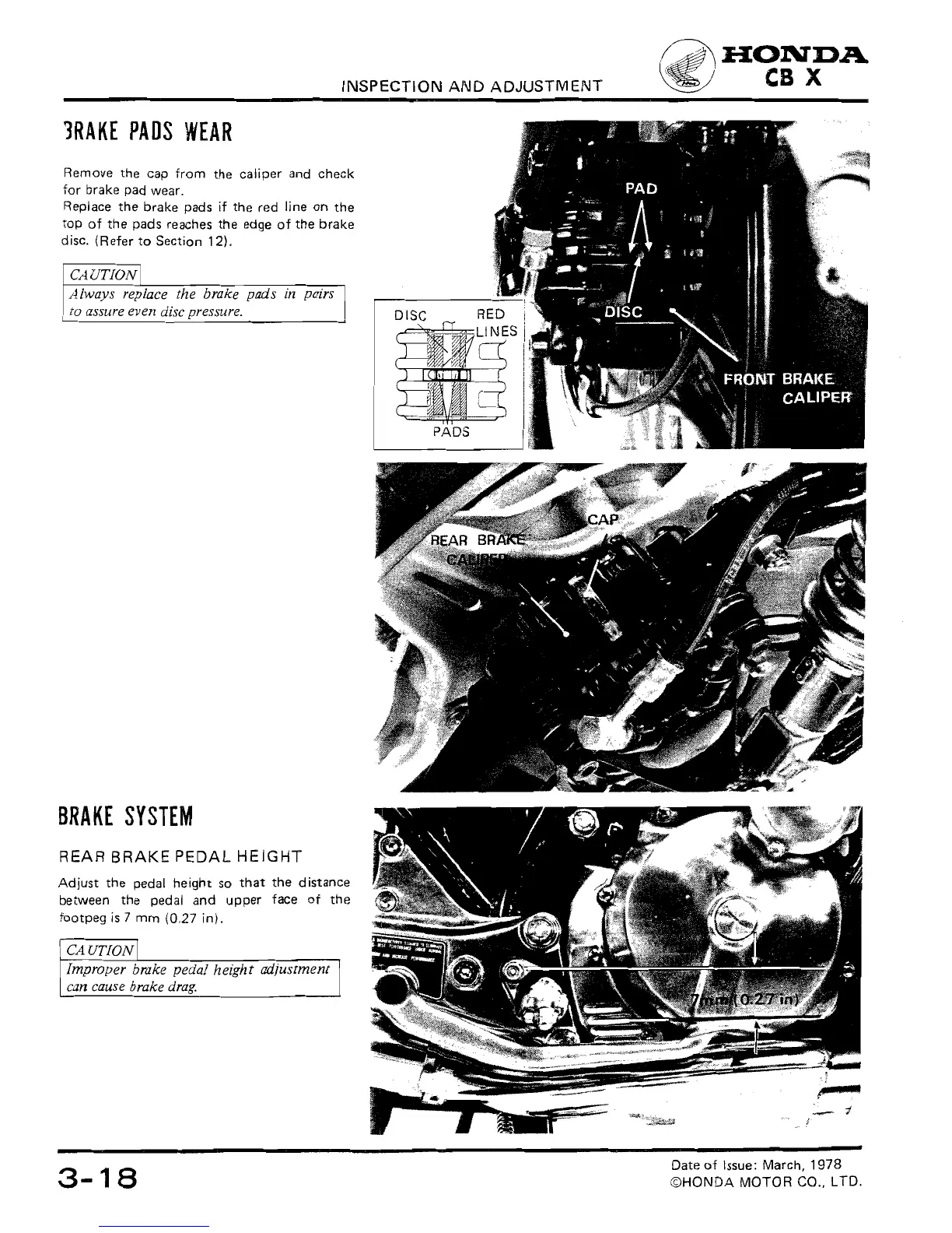 Honda 1979 CBX - Brake Pads Wear; Brake System; Rear Brake Pedal Height