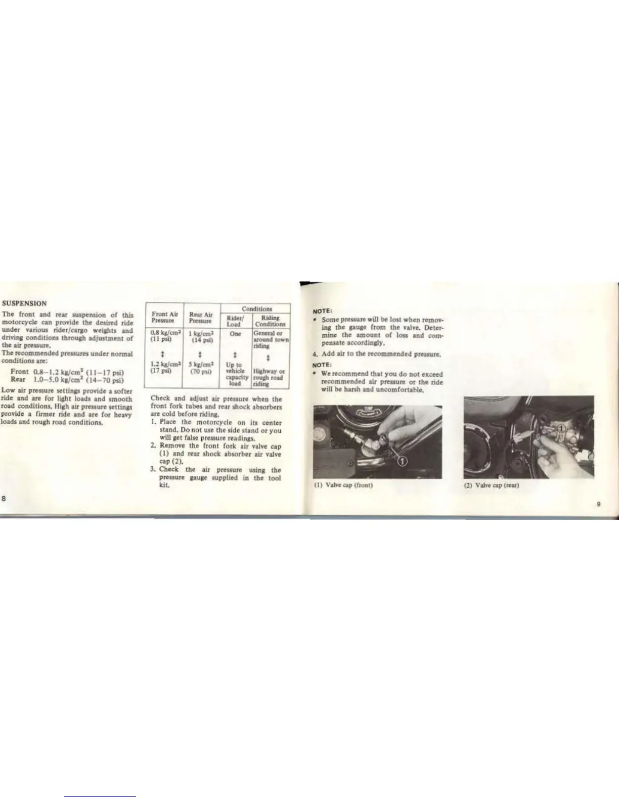 recommended pressures