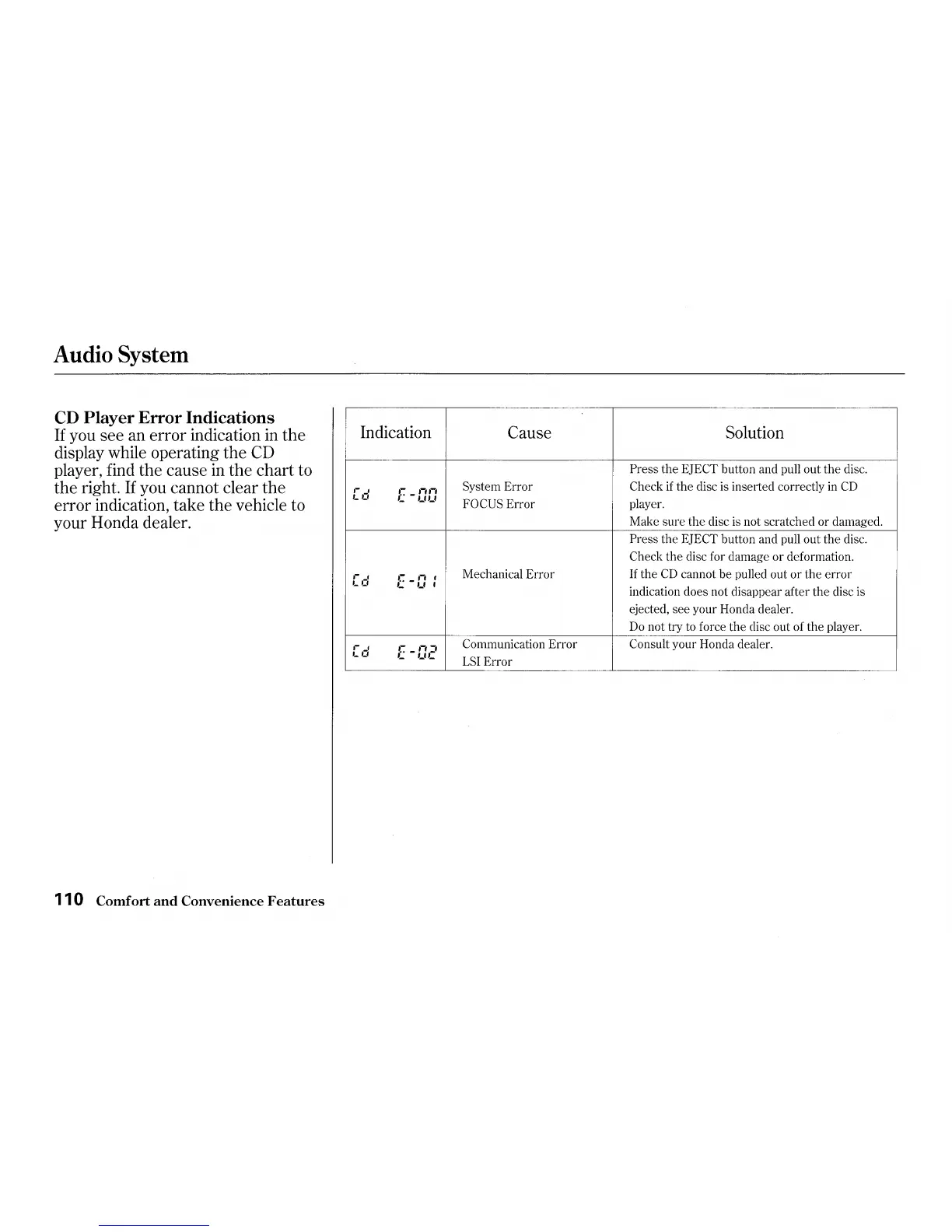 ejected, see your Honda dealer.