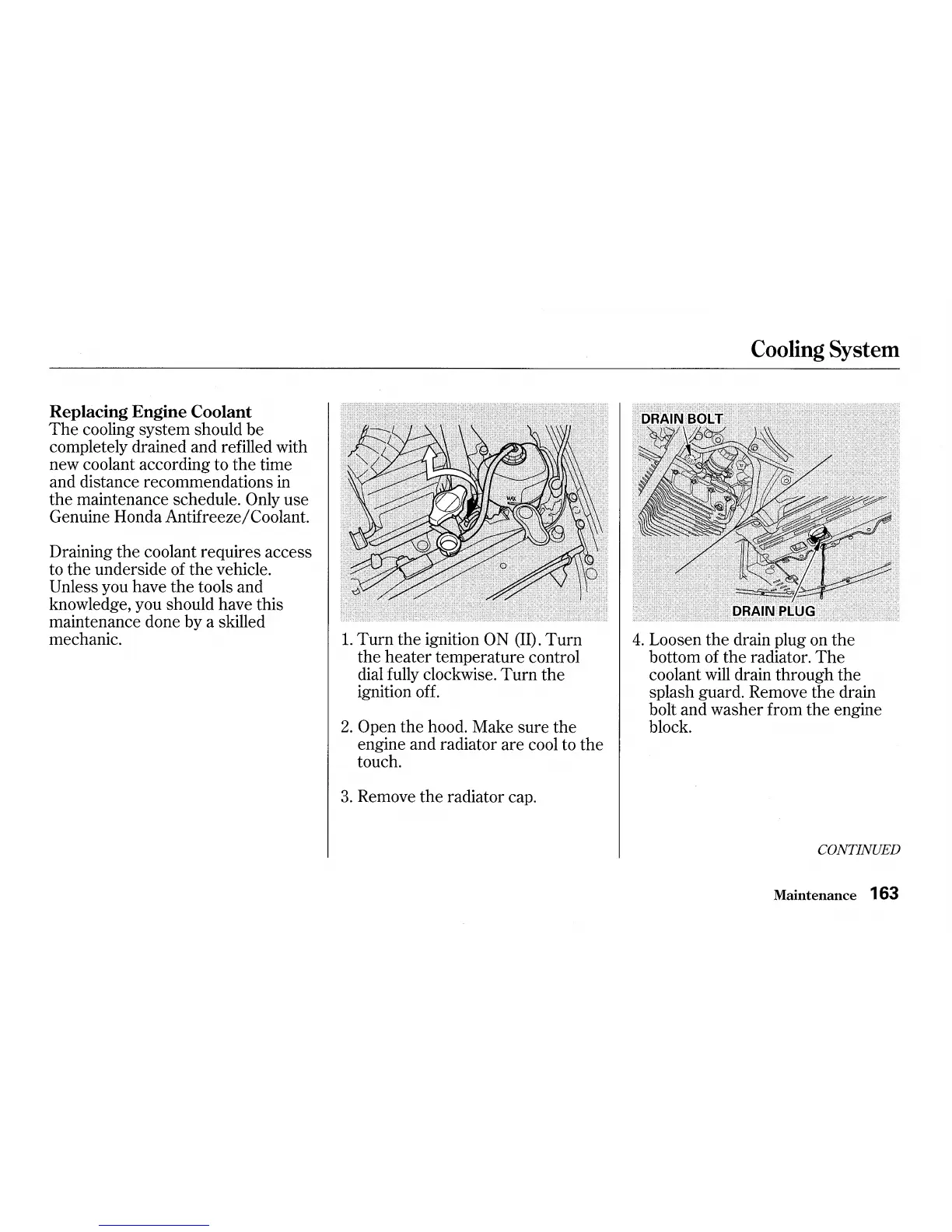 Draining the coolant requires access