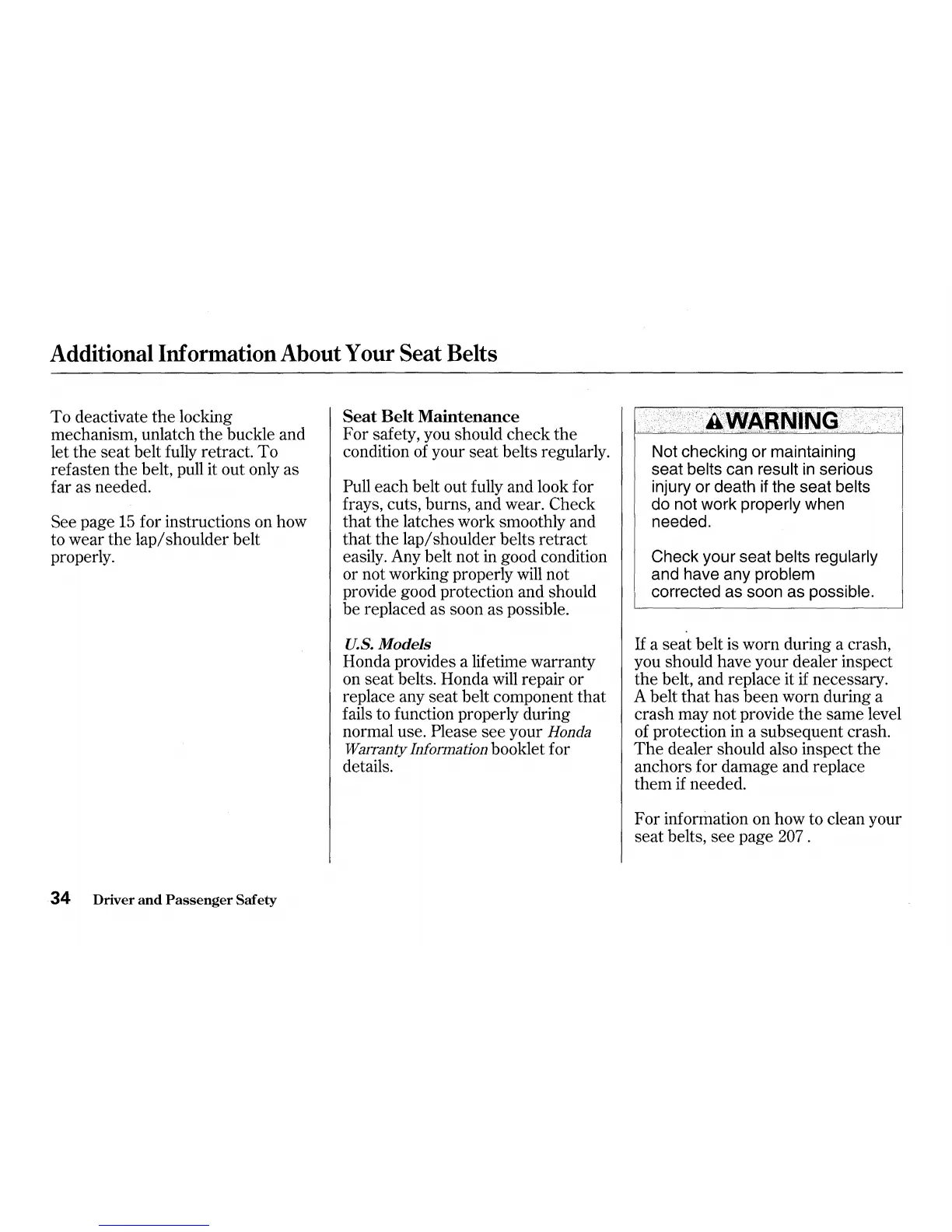 on seat belts. Honda