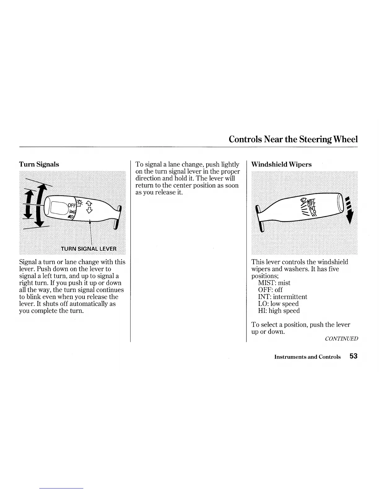 signal a lane change, push lightly Windshield Wipers