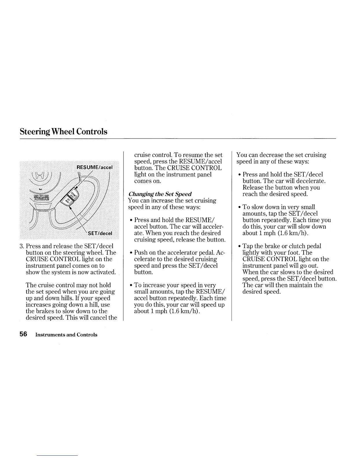 cruise control. To resume the set