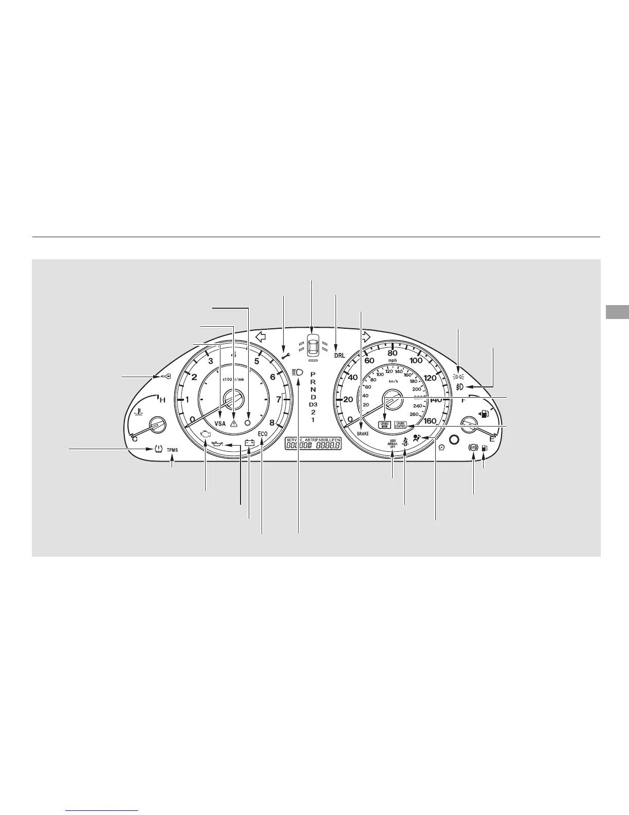 The U.S. instrument panel is shown. Differences for the Canadian models are noted in the text.