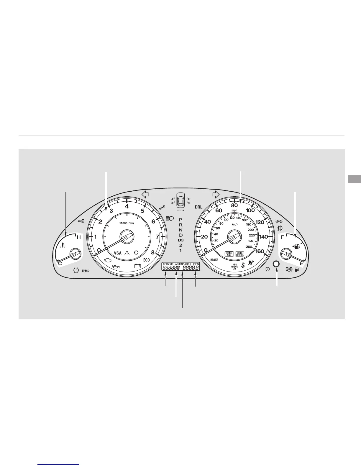 Honda 2008 Accord Sedan - Check Fuel Cap Message; Maintenance Minder; Temperature Gauge; Fuel Gauge