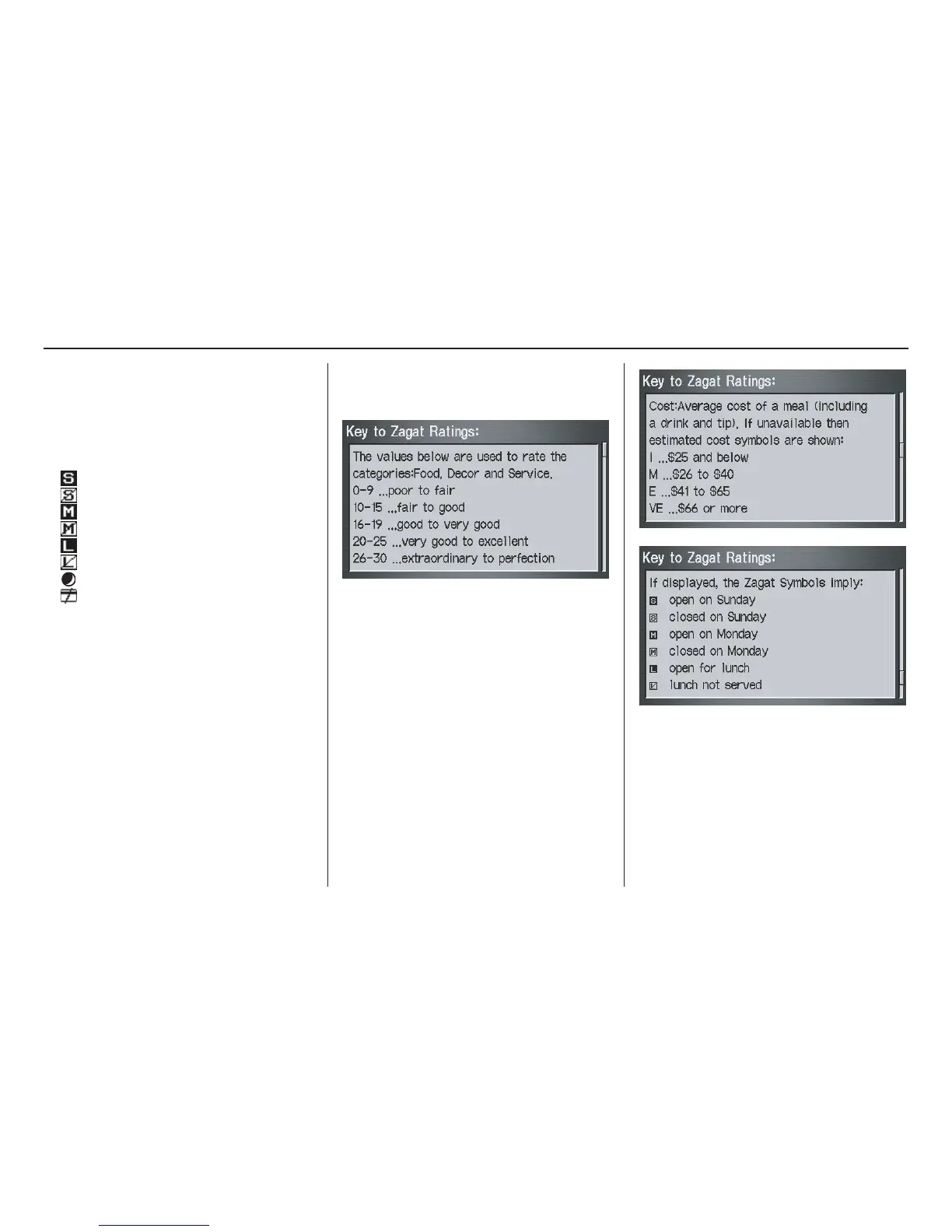 through the Key to Zagat Ratings