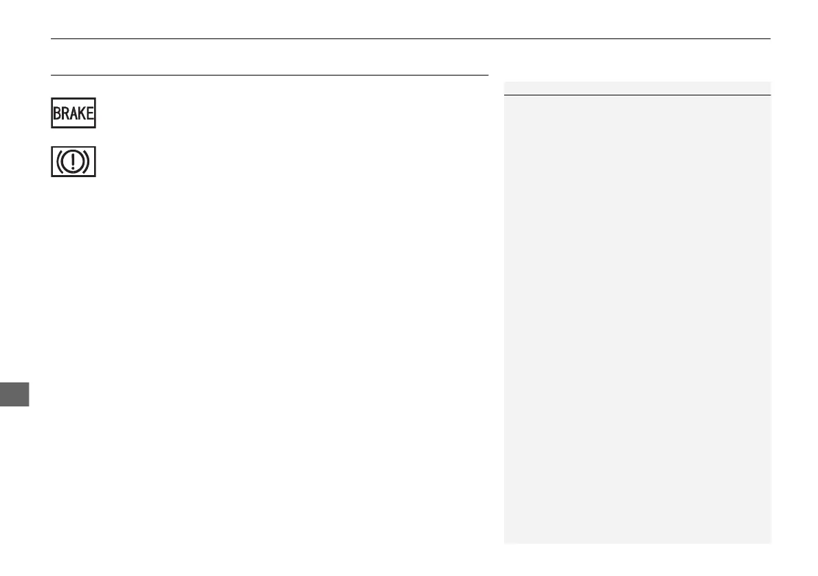uuIndicator, Coming On/BlinkinguIf the Brake System Indicator Comes On