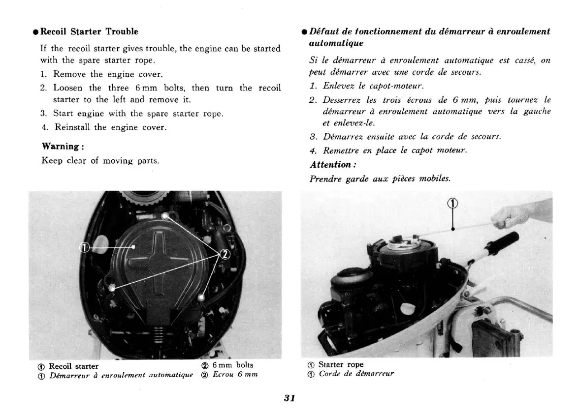 Honda 75 - Recoil Starter Troubleshooting; Starting with a Spare Starter Rope