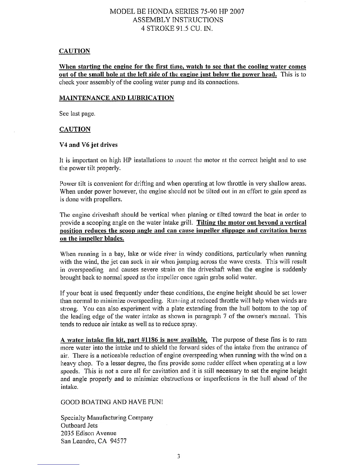Honda BE - Maintenance and Lubrication; V4 and V6 Jet Drives
