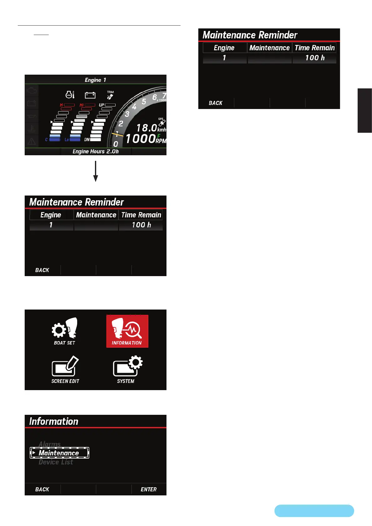 接続されている船外機の次回定期点検までの残時間を確認