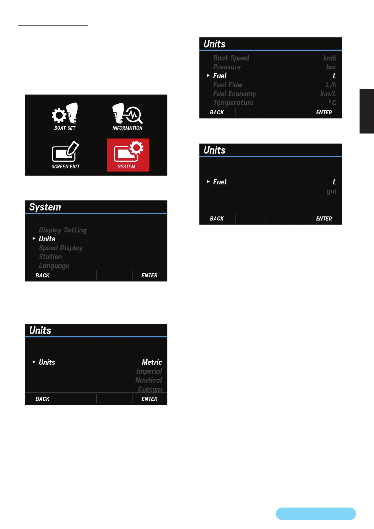 2. [∧]/[∨]ボタンを押して Units を選択し、[ENTER]