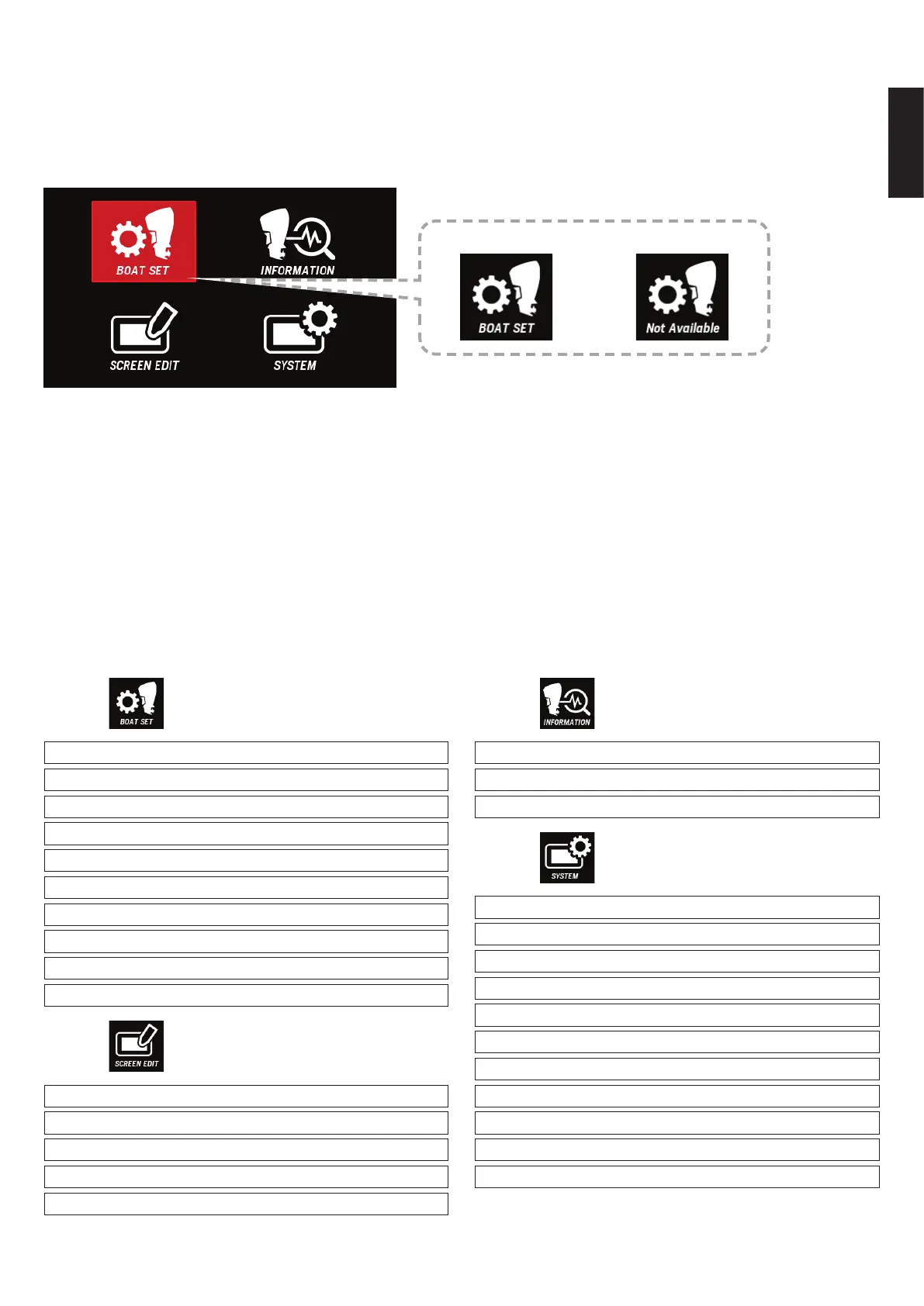 * In the Multi-Function Display set on an inactive station, which has no operation authority, Not Available is shown instead of BOAT SET in the