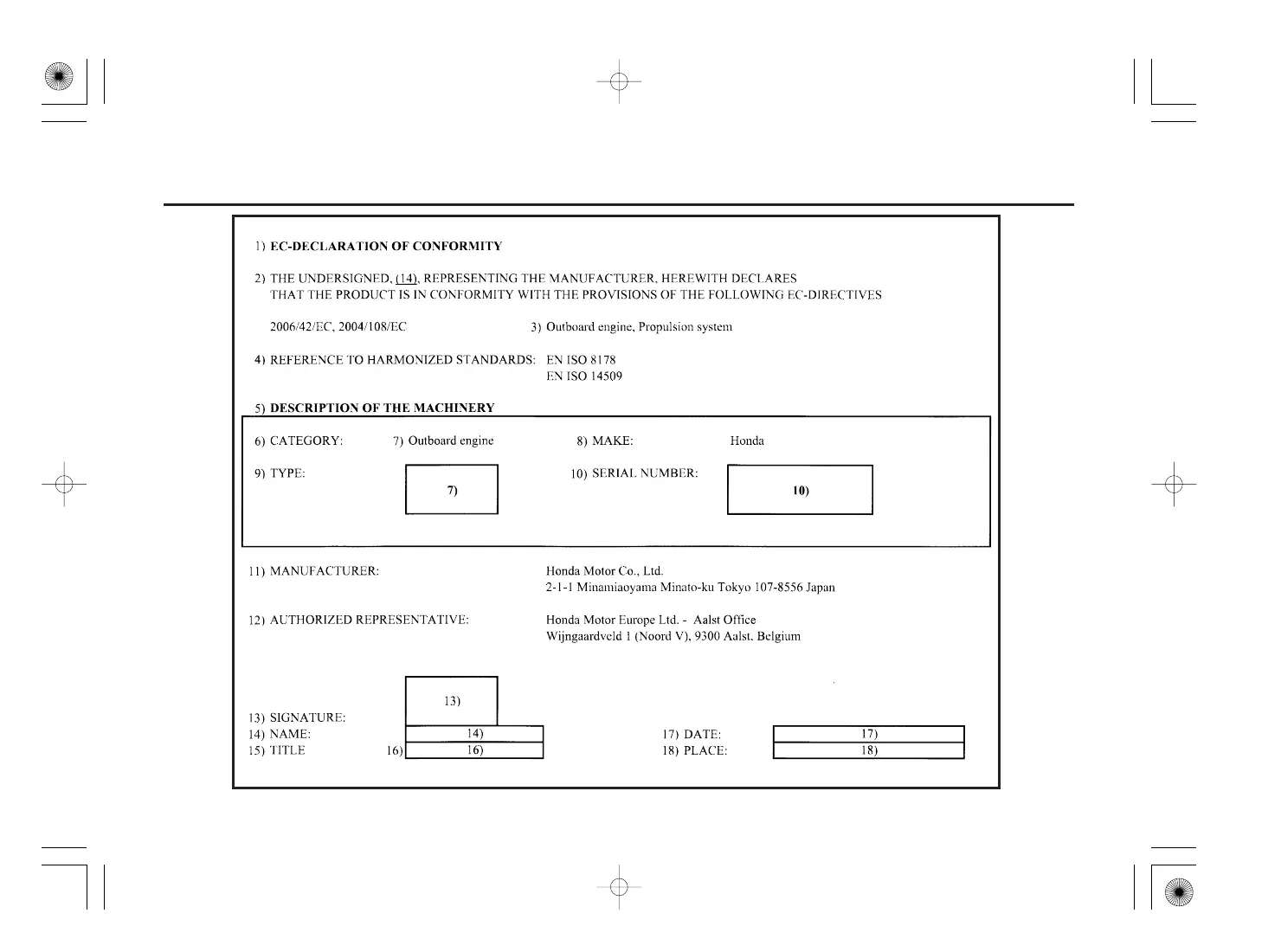 Honda BF10D - 18. ‘‘EC DECLARATION OF CONFORMITY’’ CONTENT OUTLINE; EC Declaration of Conformity Outline