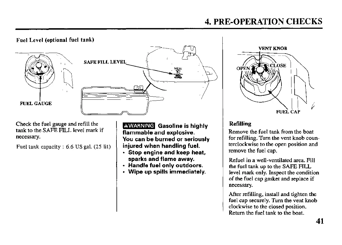 Honda BF115A - Fuel Lever (Optional Fuel Tank); Refilling