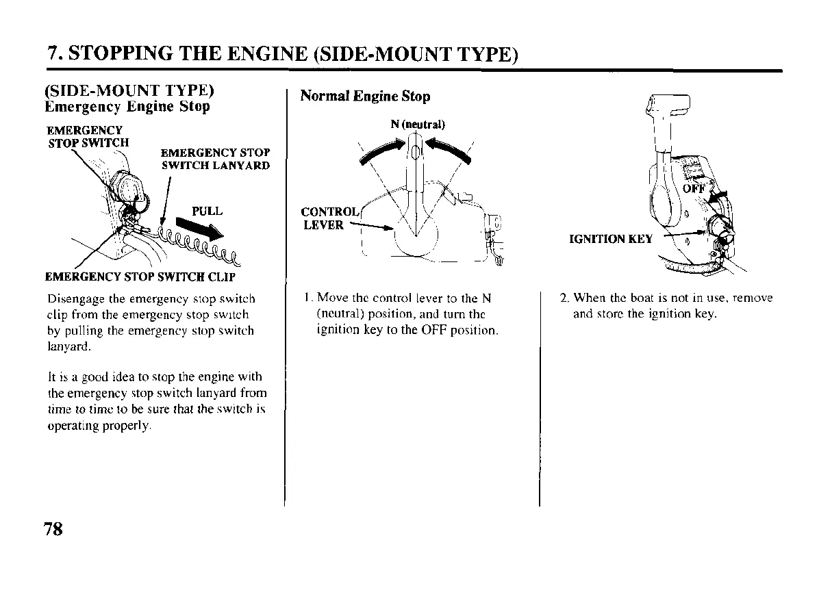 Honda BF115A - Stopping the Engine (Side-Mount Type); Emergency Engine Stop; Normal Engine Stop