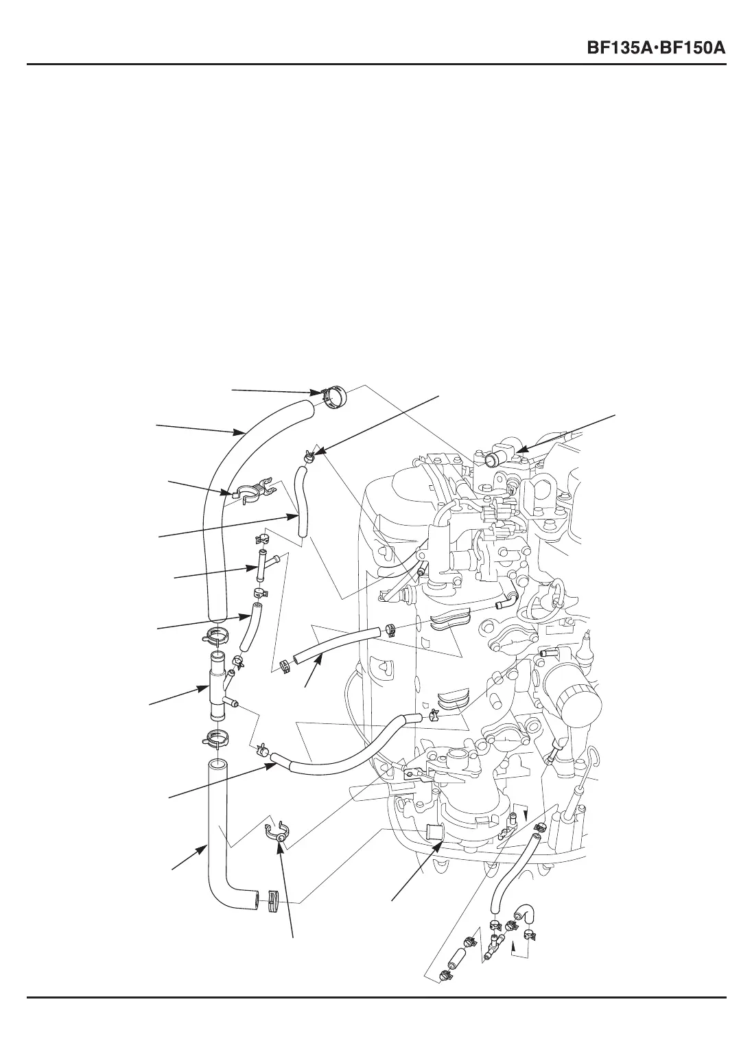 2) Disconnect the 7 x 90 mm tube, 7 x 120 mm tube and the water tube E from the engine side.