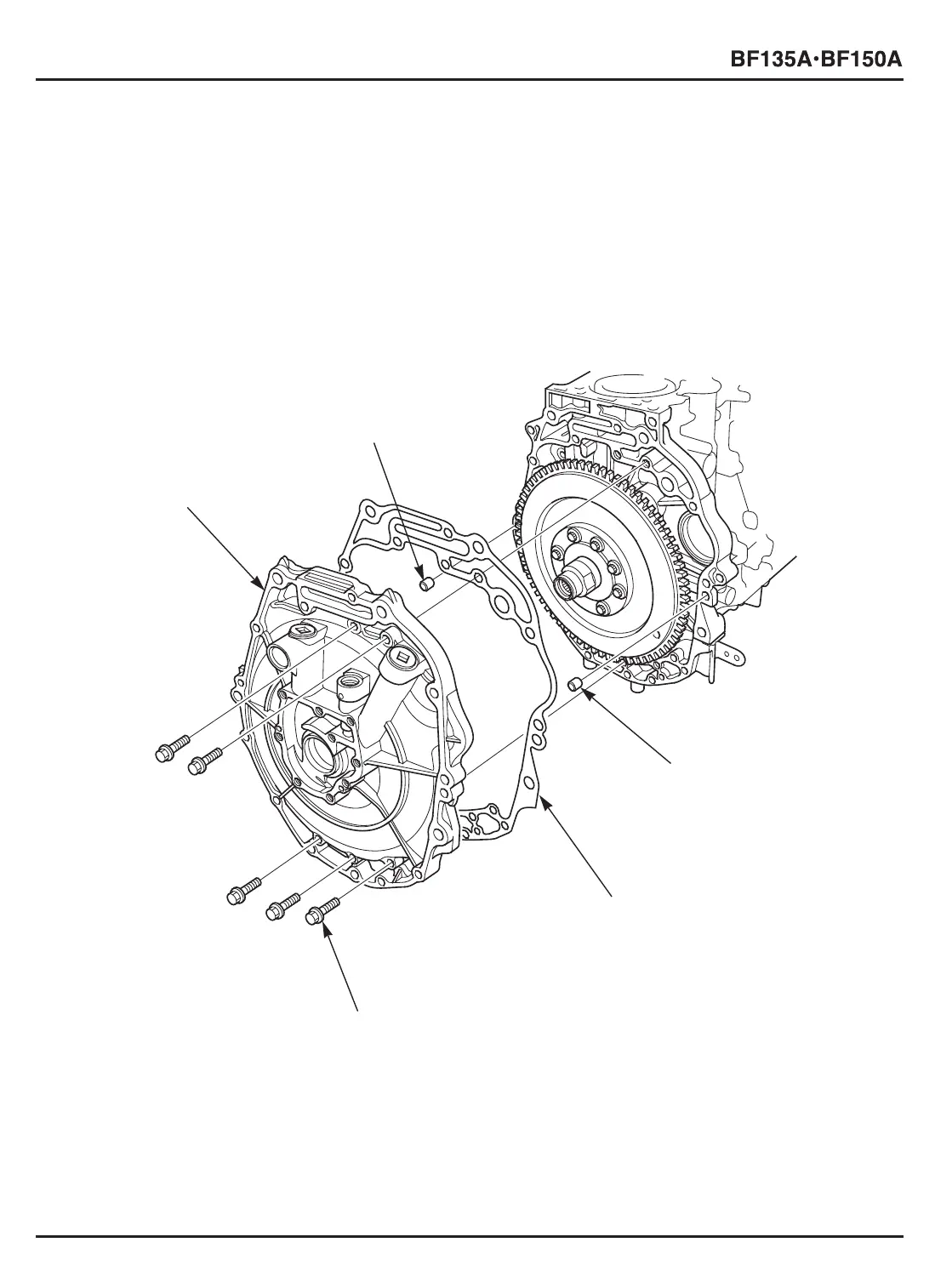 2) Remove the five 8 x 32 mm flange bolts. Remove the oil pump body assembly, oil pump body gasket, 14 x 20 mm
