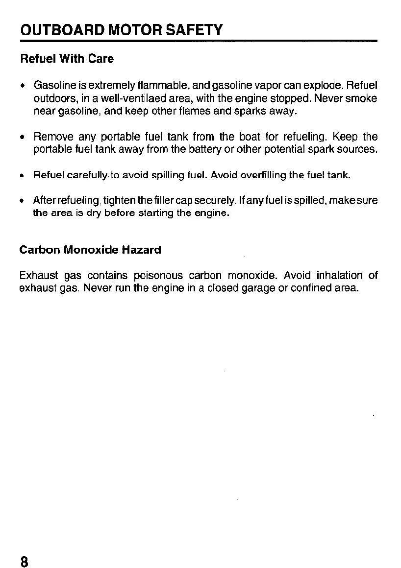 Remove any portable fuel tank from the boat for refueling. Keep the