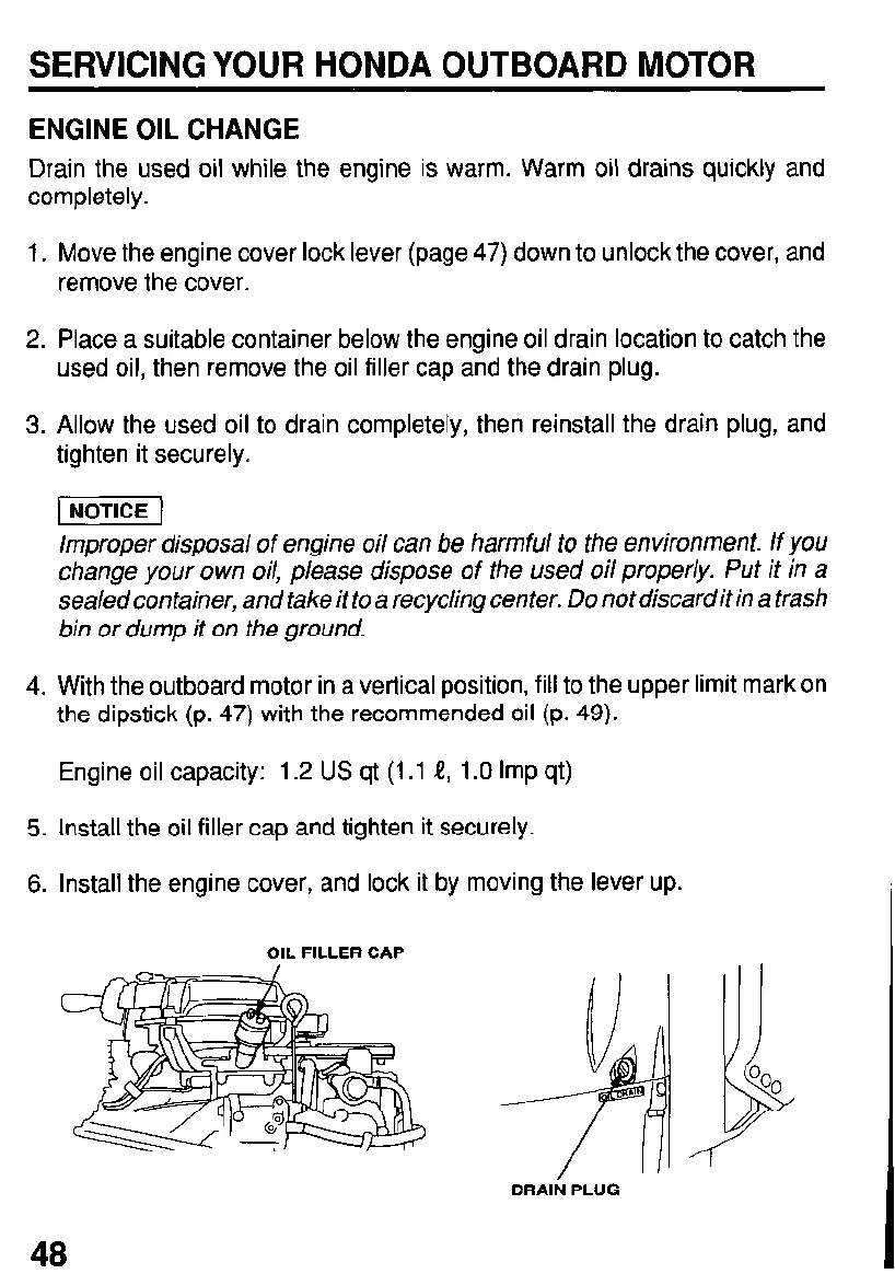Engine oil capacity: 1.2 US qt (1 .l f, 1 .O Imp qt)
