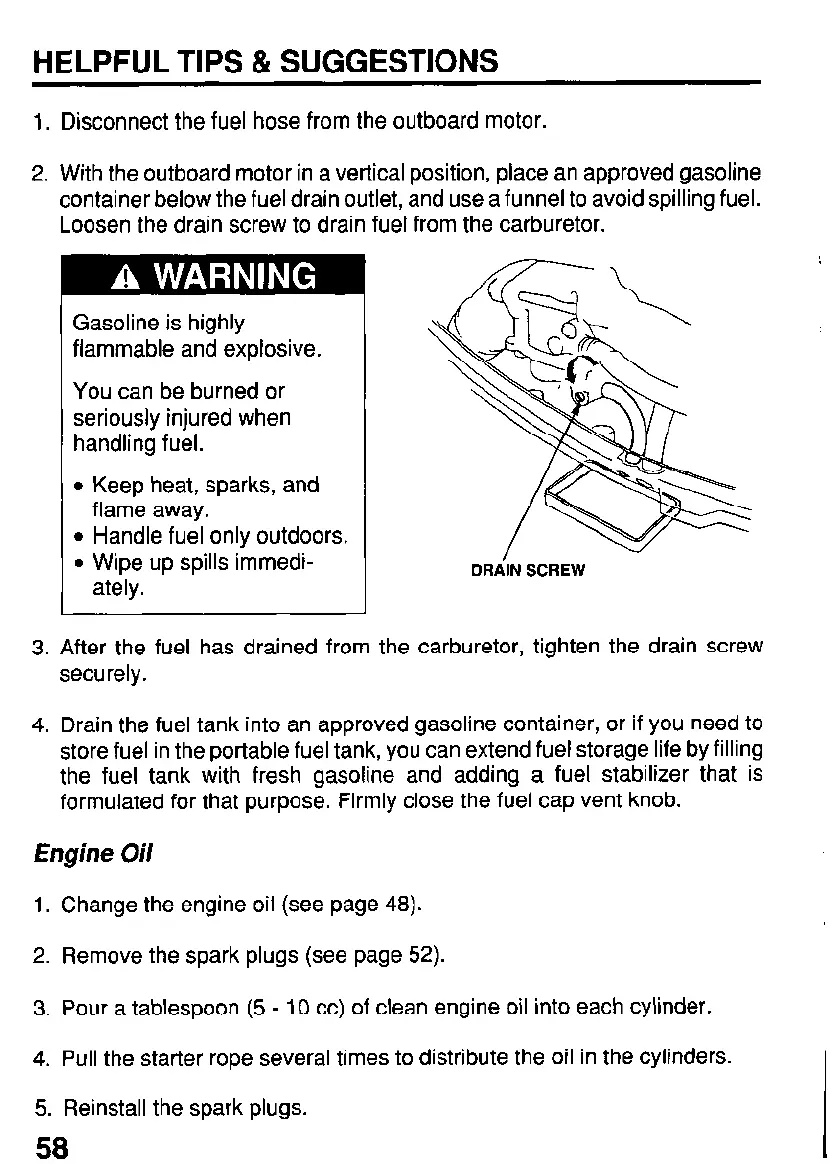 4. Drain the fuel tank into an approved gasoline container, or if you need to
