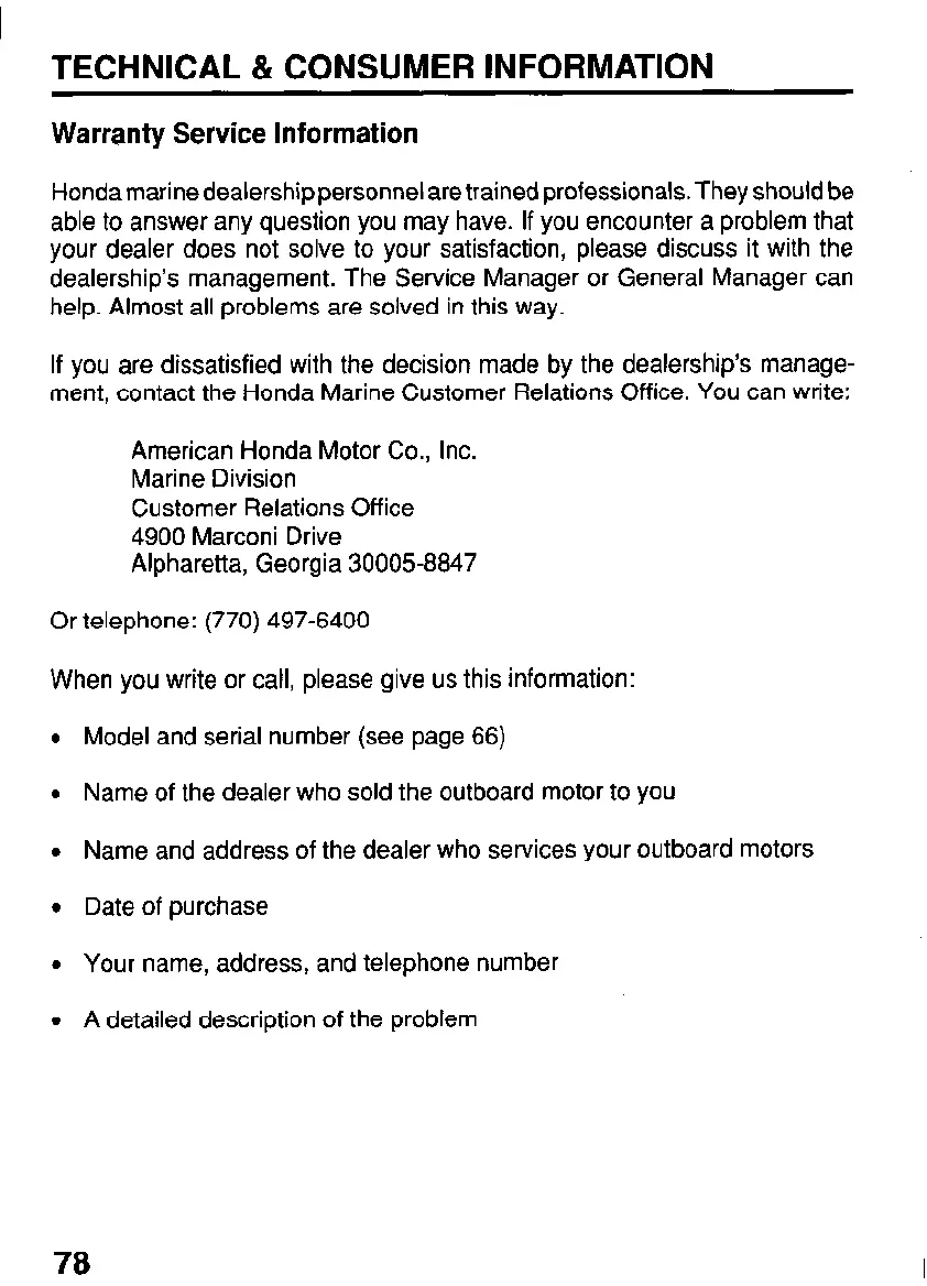 ment, contact the Honda Marine Customer Relations Office. You can write: