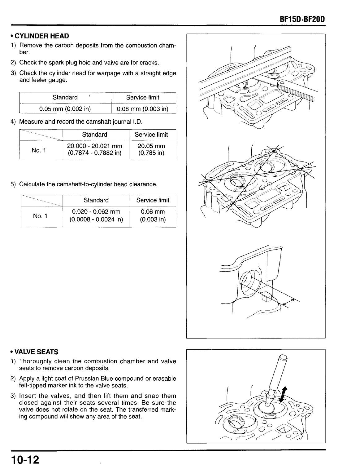 Check the cylinder head for warpage with a straight edge