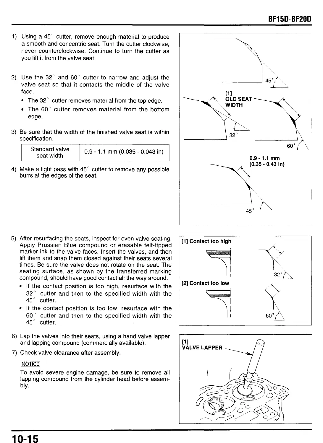 3) Be sure that the width of the finished valve seat is within
