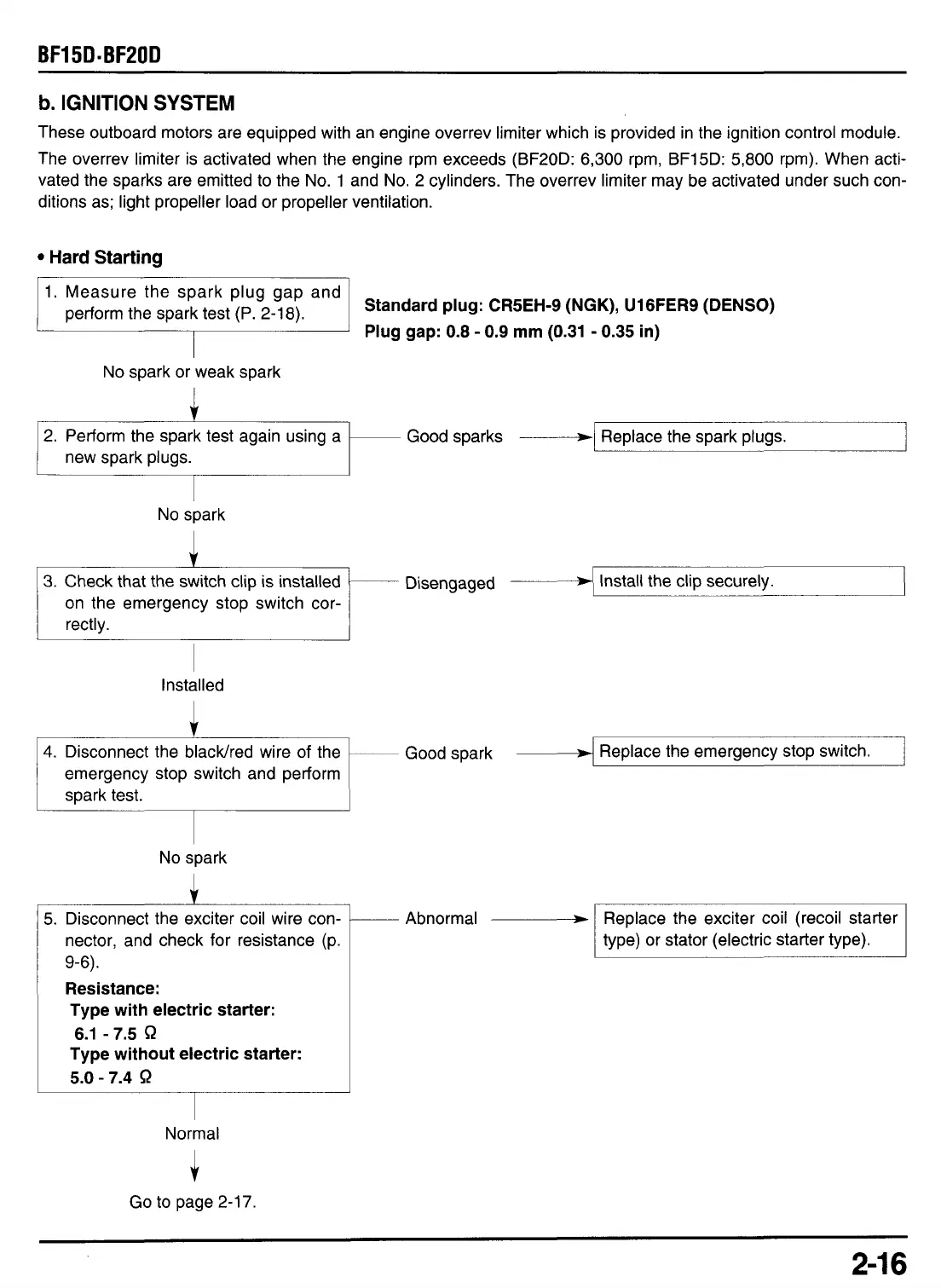 perform the spark test (P. 2-18).