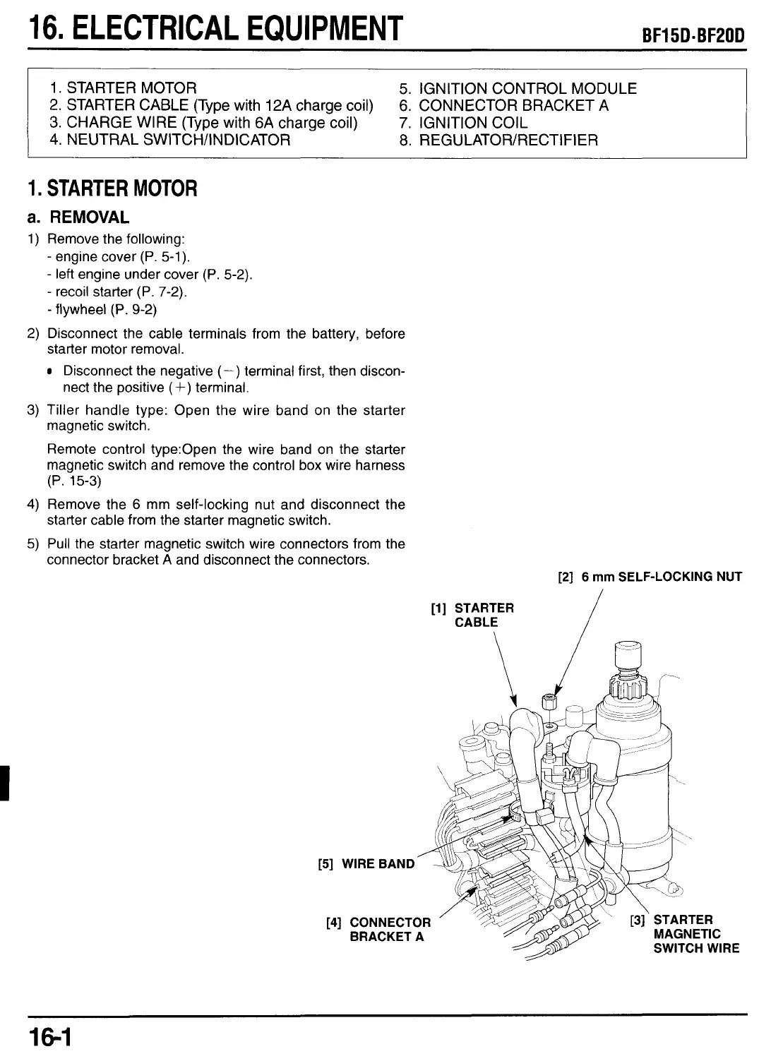 starter cable from the starter magnetic switch.