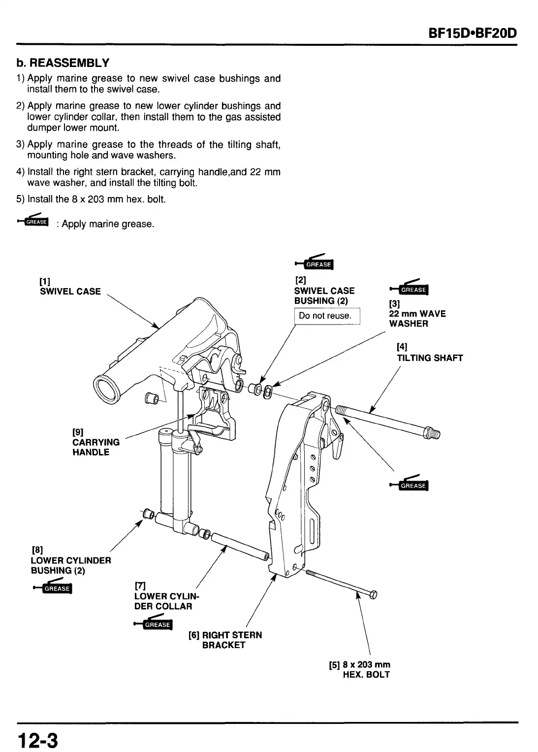 3)Apply marine grease to the threads of the tilting shaft,